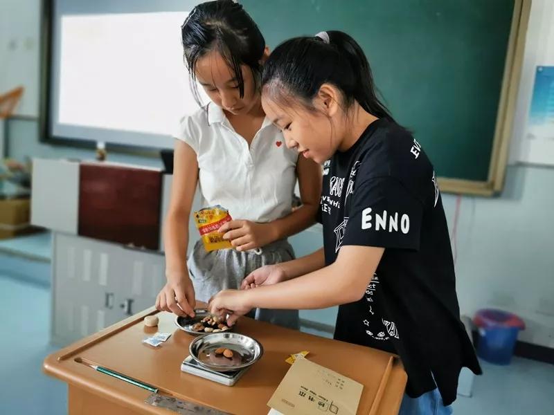 孩子们在课堂上不仅学习了坚果的历史,坚果的营养知识,还学习了如何选择新鲜的坚果,也学到了如何通过看配料表选购包装的坚果零食;同时通过在课堂上亲手对坚果称重,也明白了一周吃多少坚果才合适。